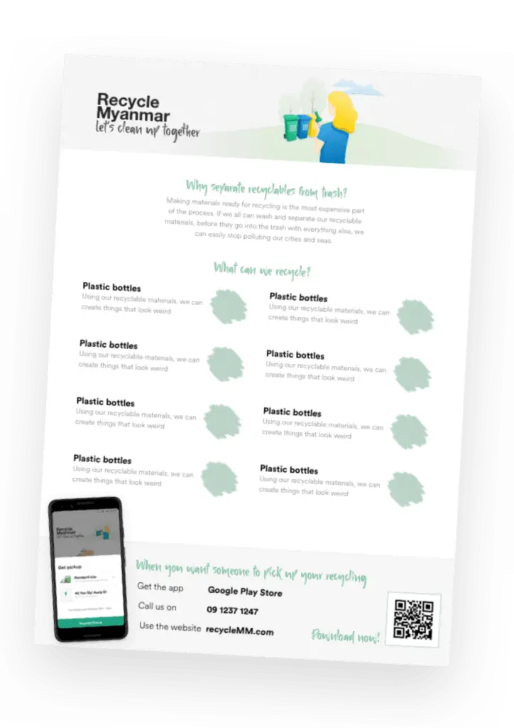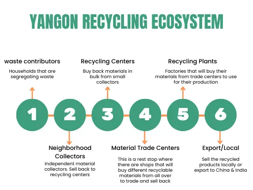 Recycling requires behavioral change within self and as a community. Social practices such as separating waste and considering the environment have been neglected in Myanmar which directly affect the recycling chain